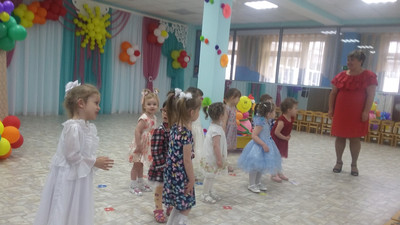 6 июня в детском саду состоялся выпускной утренник для детей с 2-х до 3-х лет: малыши подросли – пора переходить из ясельной группы в дошкольную. В гости к ребятам пришли мамы, папы, бабушки и дедушки. Дети пели, играли на музыкальных инструментах, танцевали; вместе с петушком, щенком и кошкой старались выяснить «Кто скамеечку нагрел?». Кульминацией праздника стали: танец маленьких пчелок, сладкие подарки и воздушные шары.