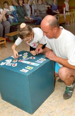 30 октября в детском саду прошел традиционный спортивный праздник для детей с ограниченными возможностями здоровья. Праздник состоялся во второй раз. В нем приняли участие дети подготовительной к школе группы компенсирующего вида и их родители. Взрослые и дети с большим воодушевлением и спортивным азартом соревновались, принимали участие в спортивных эстафетах. Особенно старались папы: они задавали тон и показывали пример всем остальным.