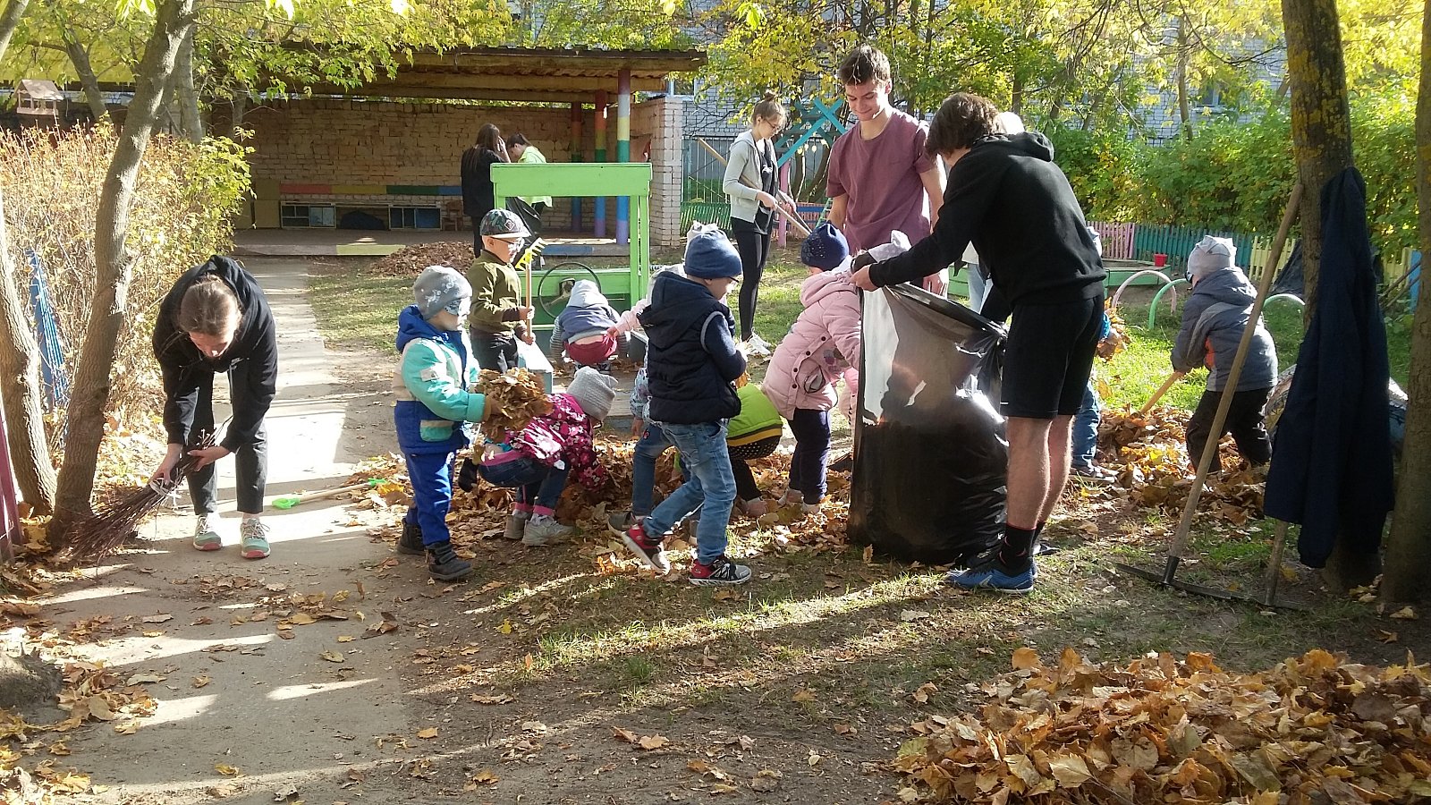 6-7 октября детский сад посетили волонтеры - ученики 10-А класса МБОУ СОШ № 24 под руководством Полины Андреевны Соколовой, учителя физкультуры. Старшеклассники играли с дошкольниками в подвижные игры, убирали сухую листву с прогулочных площадок, подметали дорожки. Воспитанники детского сада с огромным удовольствием трудились вместе со школьниками.