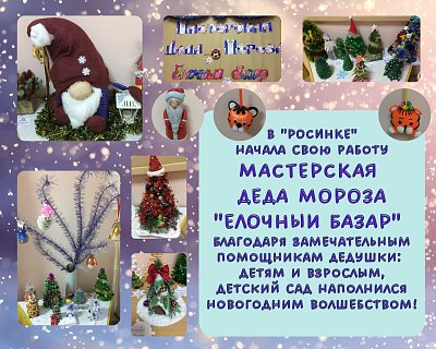 В росинке начала свою работу Мастерская Деда Мороза "Ёлочный базар". Благодаря замечательным помощникам Дедушки: детям и взрослым, детский сад наполнился новогодним волшебством.