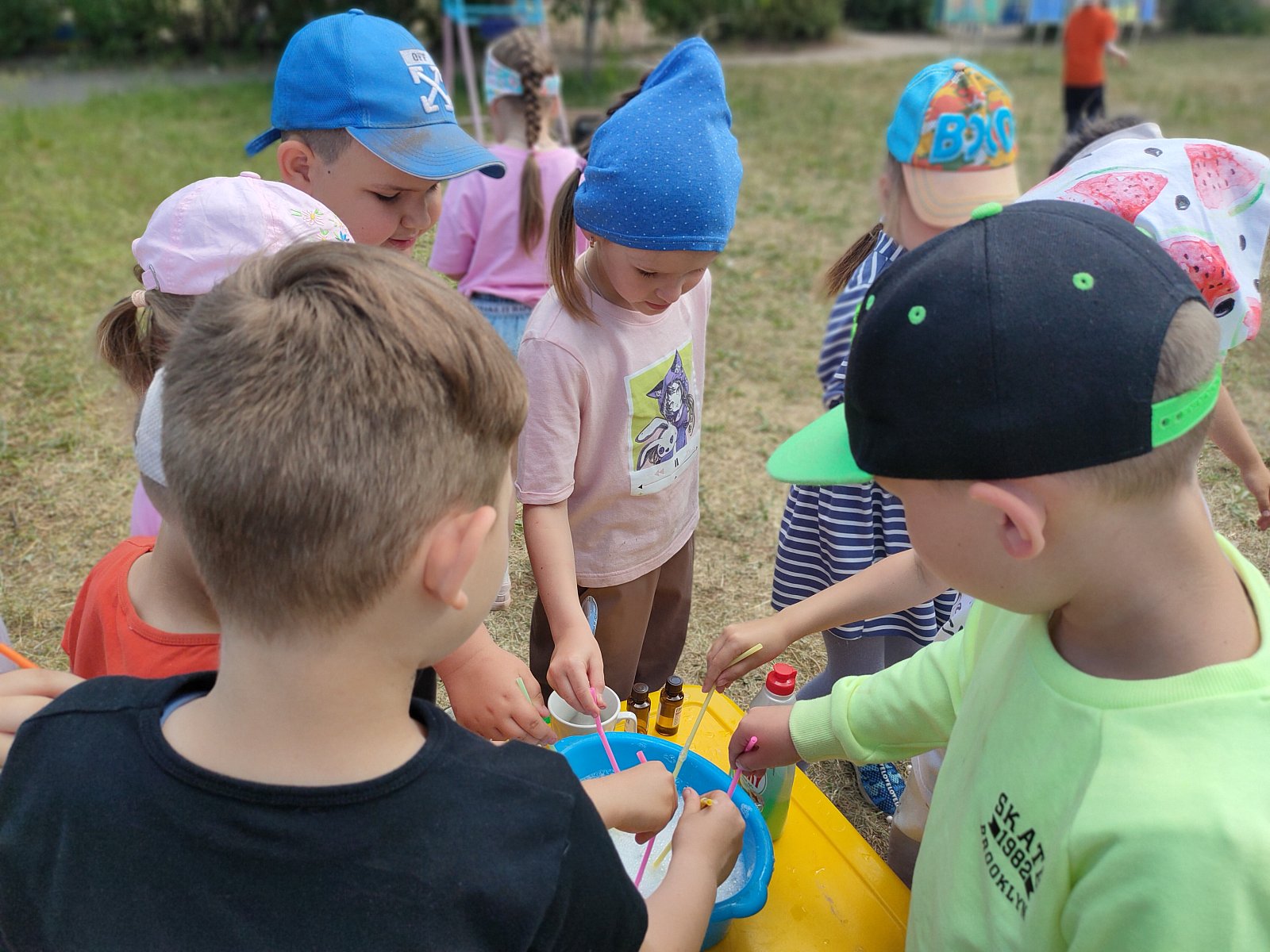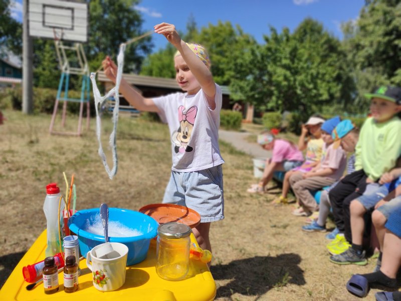 Настоящее научное исследование провели воспитанники группы «Почемучки». Они узнали из чего можно сделать пузыри сейчас и из чего их готовили раньше. Оказывается, когда-то пузыри пускали через трубочку из газеты. Почему бы не попробовать? Получилось и довольно успешно. Какие только пузыри мы не пускали?! Даже огромные с помощью петли из ниток. А вот и рецепт приготовления крепких мыльных пузырей от «Почемучек».