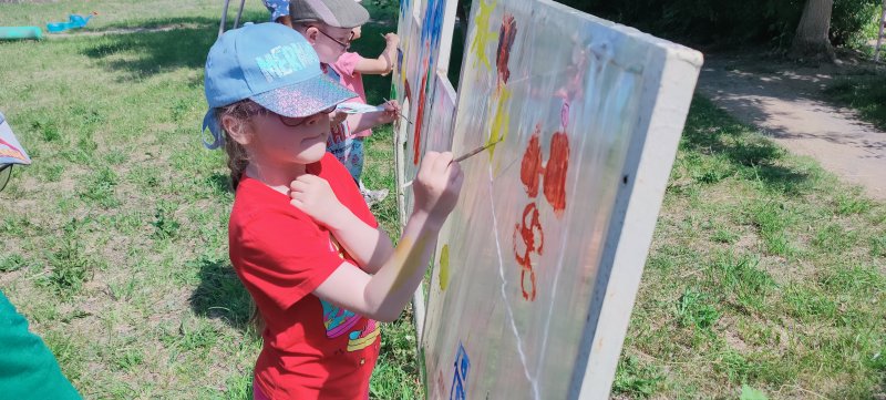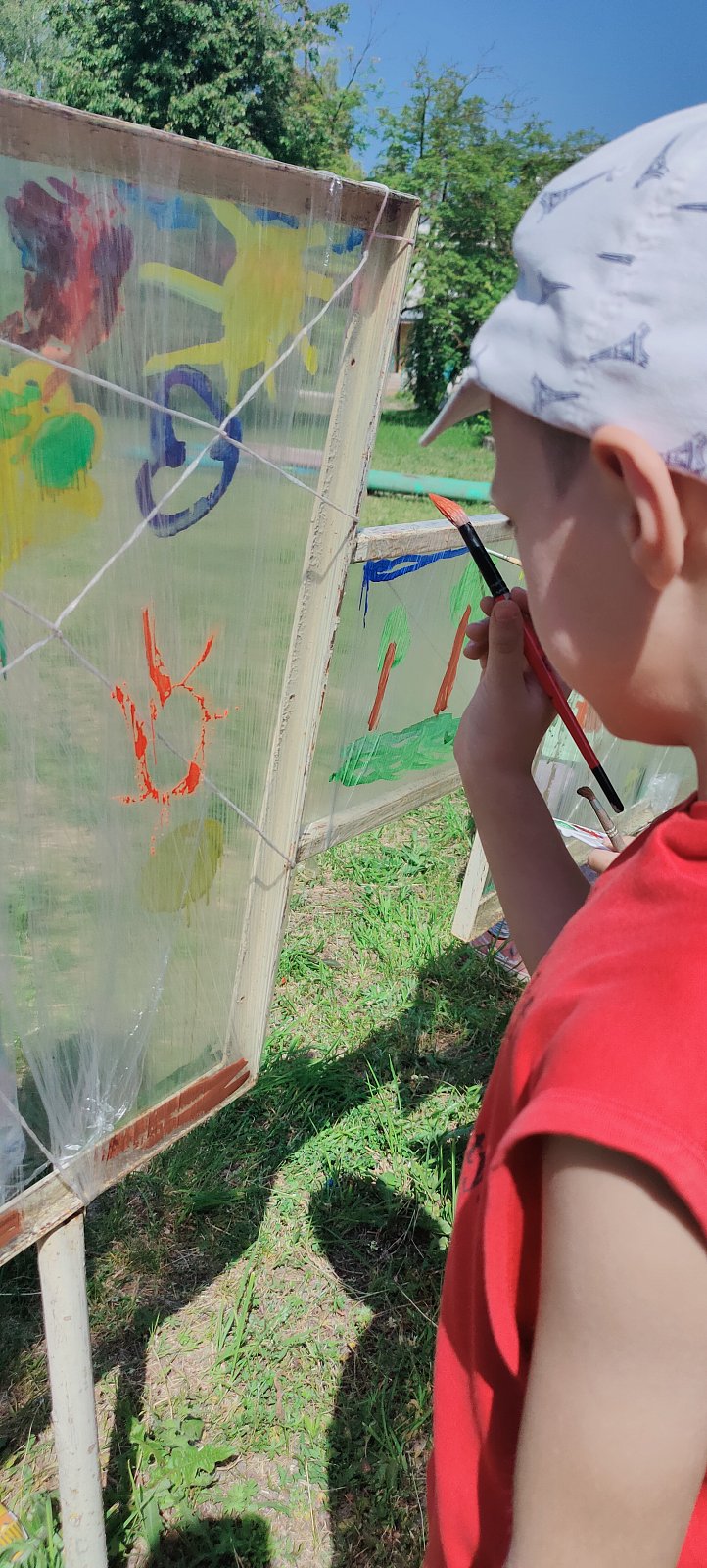 Наши ребята из старшей группы сегодня попробовали изобразить летние картины. Вы можете их увидеть на выставке под открытым небом. Здорово получилось?