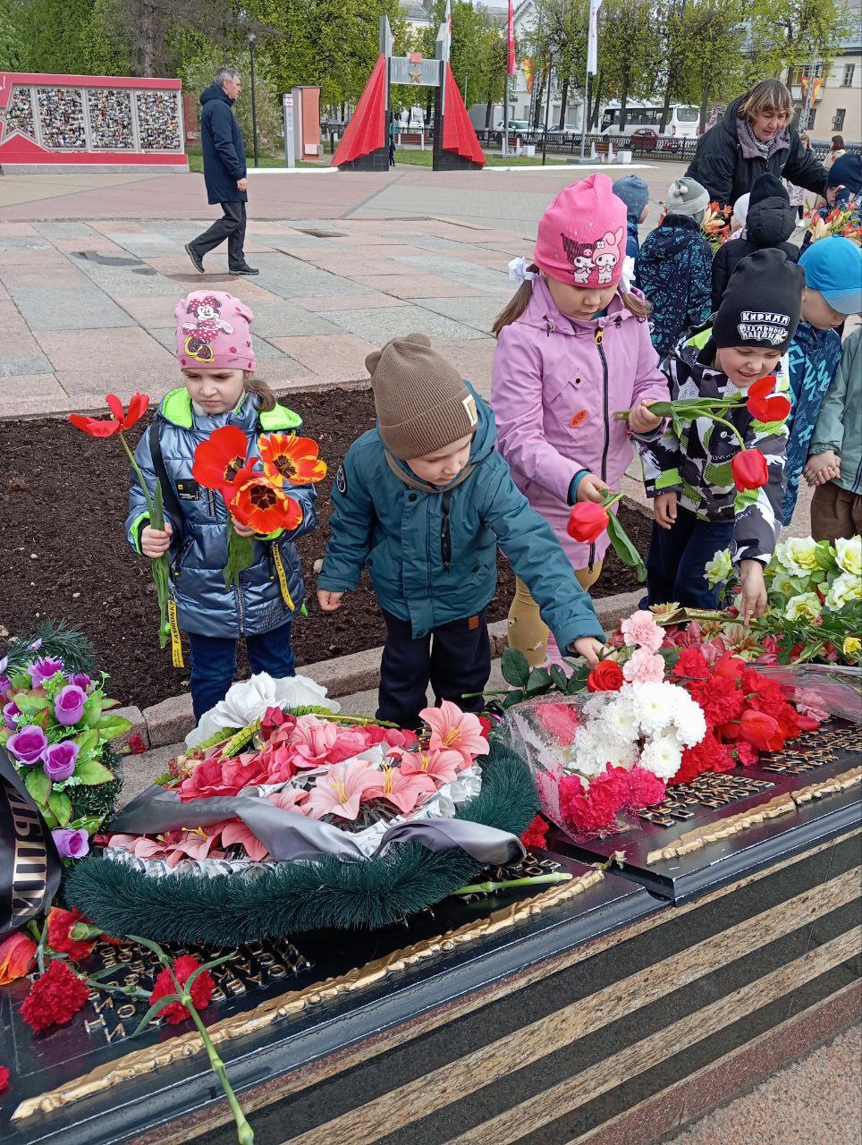 Наш детский сад окунулся в атмосферу патриотизма и уважения к историческому прошлому. Ребята из старших и подготовительных групп с гордостью отправились на Площадь Победы, чтобы возложить цветы и почтить память героев. Мы с восторгом посетили Аллею героев, рассмотрели стелы, увековечившие имена героев - ковровчан. На баннерах сияли фотографии тех, кто смело сражался за нашу страну, и сердца детей наполнились гордостью за их подвиги.Каждый ребенок смог увидеть, как работает караул, и почувствовать тепло Вечного огня. Эти моменты заставили задуматься о великой цене победы и о том, как важно помнить наших героев.